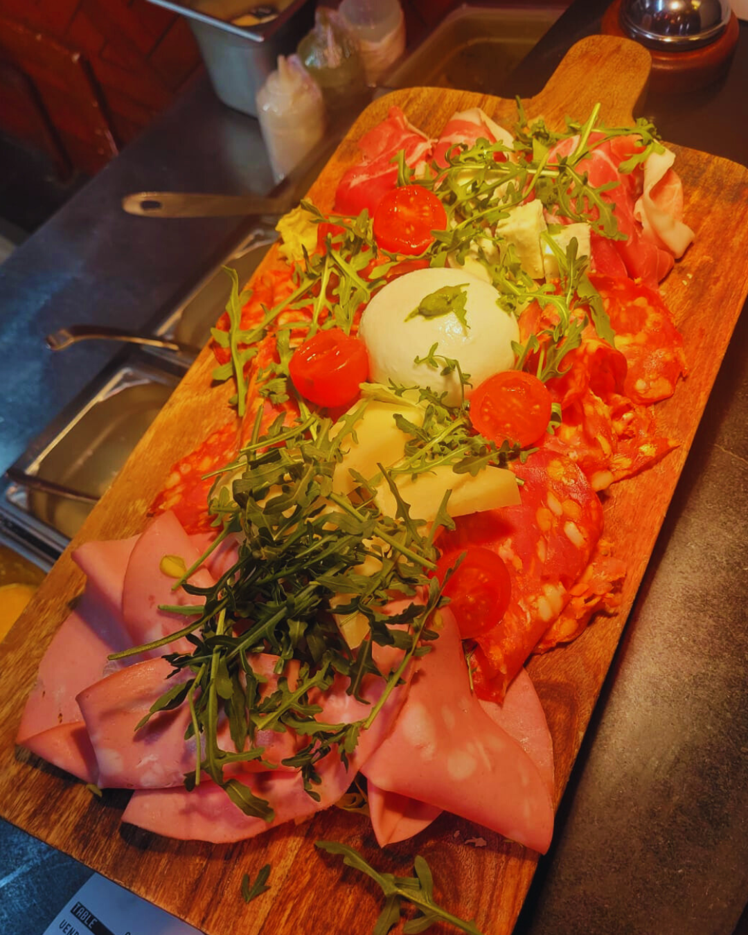 28€Prosciutto di Parma, Mortadella, Spianata, piccante, Burrata, Gorgonzola, Grana, Pecorino.