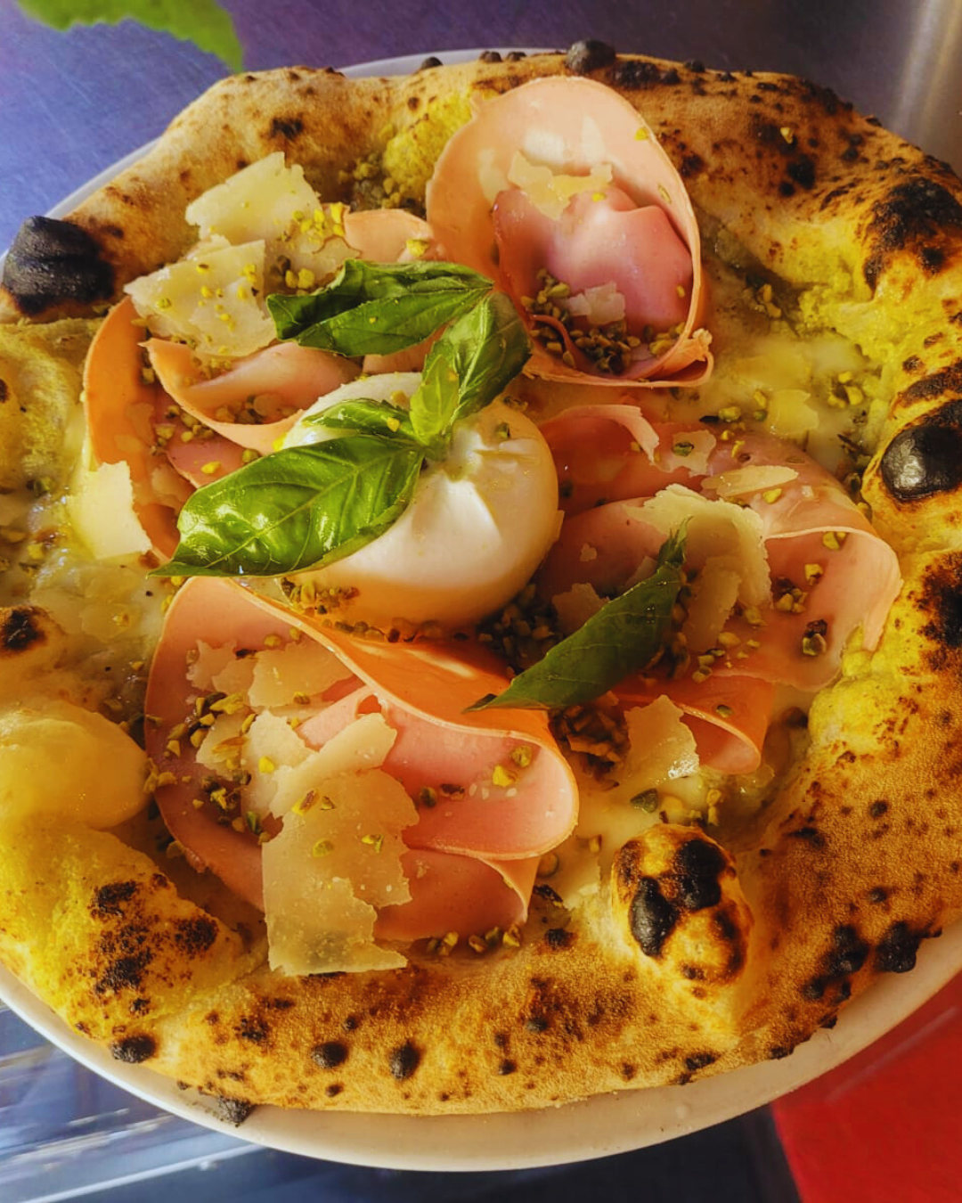 21€Sauce Pesto maison, Mozzarella Fior di Latte, Burrata, Grana, Tomates cerises, Huile d’olive Extra vierge